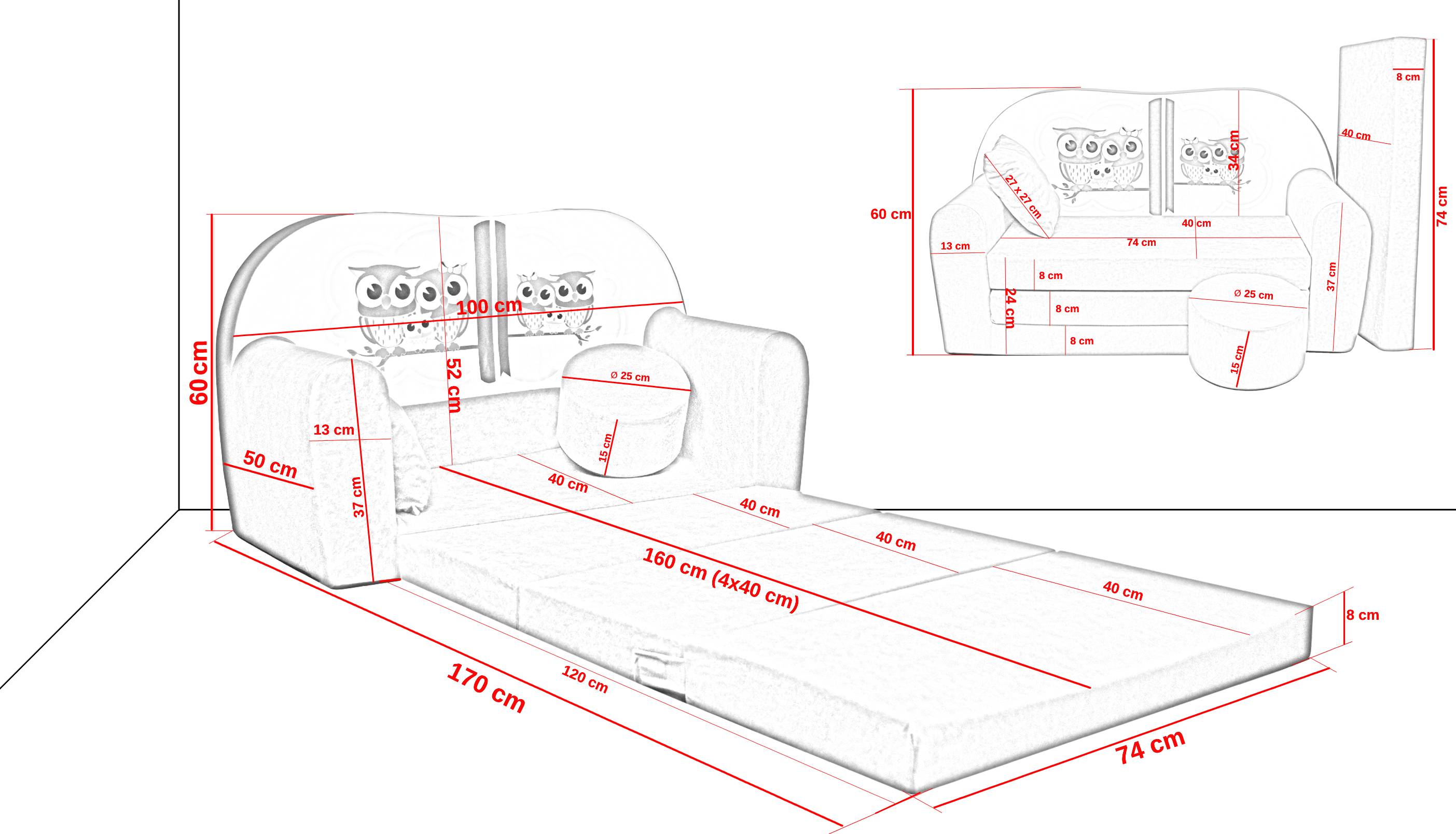 Καναπές: 105 Χ 50 Χ 60 (ύψος)